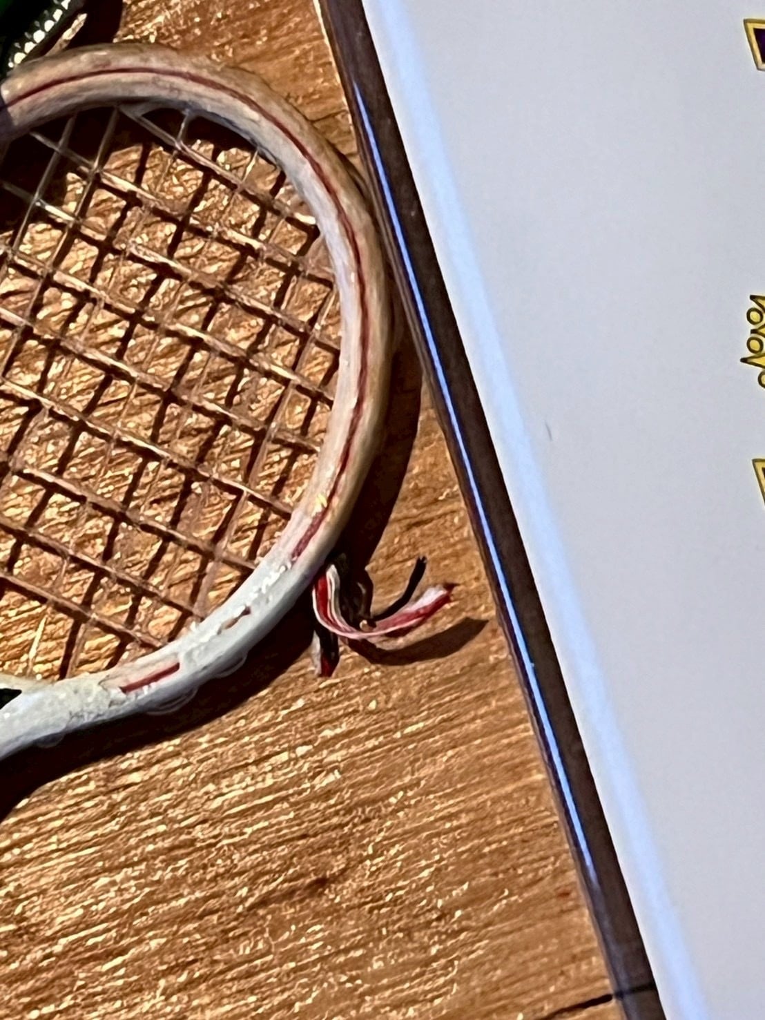 テニスラケットの軽快なモチーフに、オイル缶のインダストリアルな雰囲気、スマイルボールのポップなアクセントが加わり、ラフで遊び心のあるバランスに仕上がっています。
