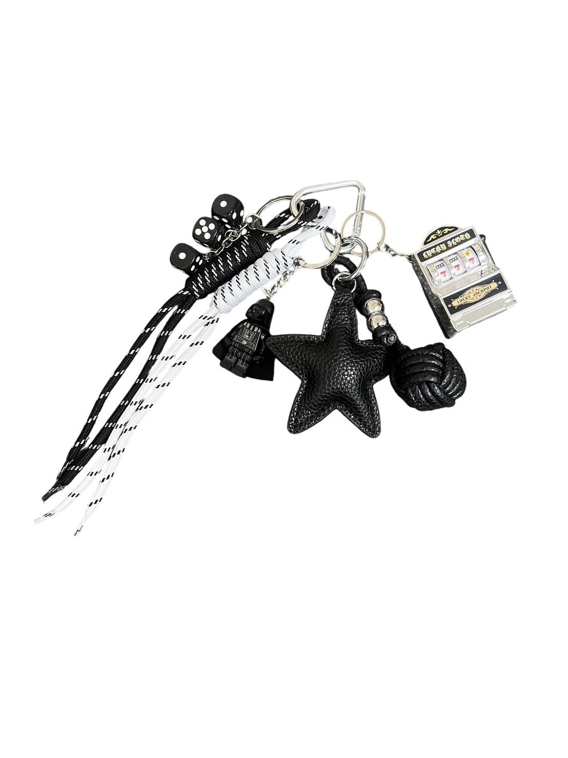 メジャーSF映画の重厚な黒いマスクのダークヒーロー、ダイス、スロットモチーフを組み合わせたミックスキーチャーム。