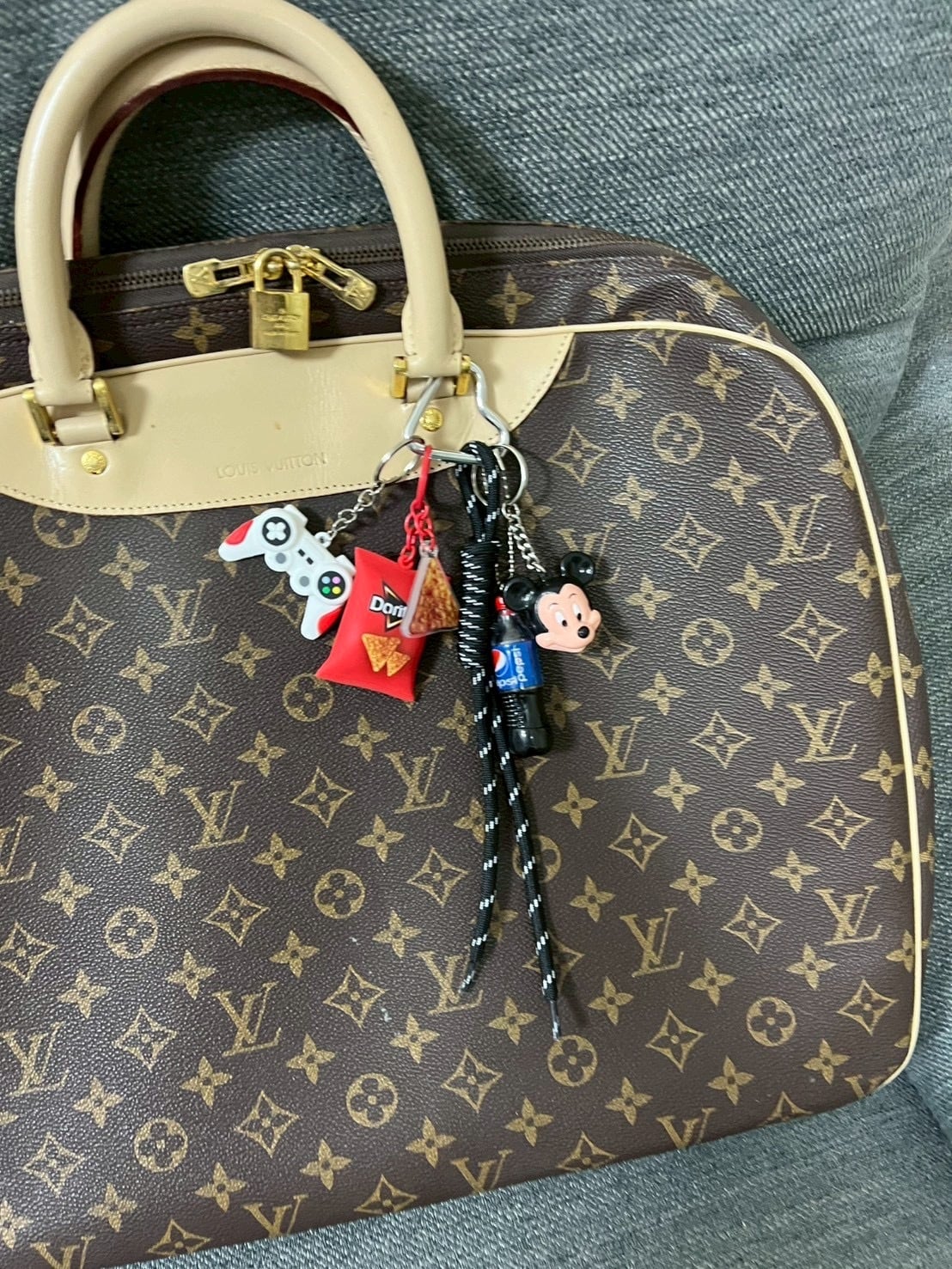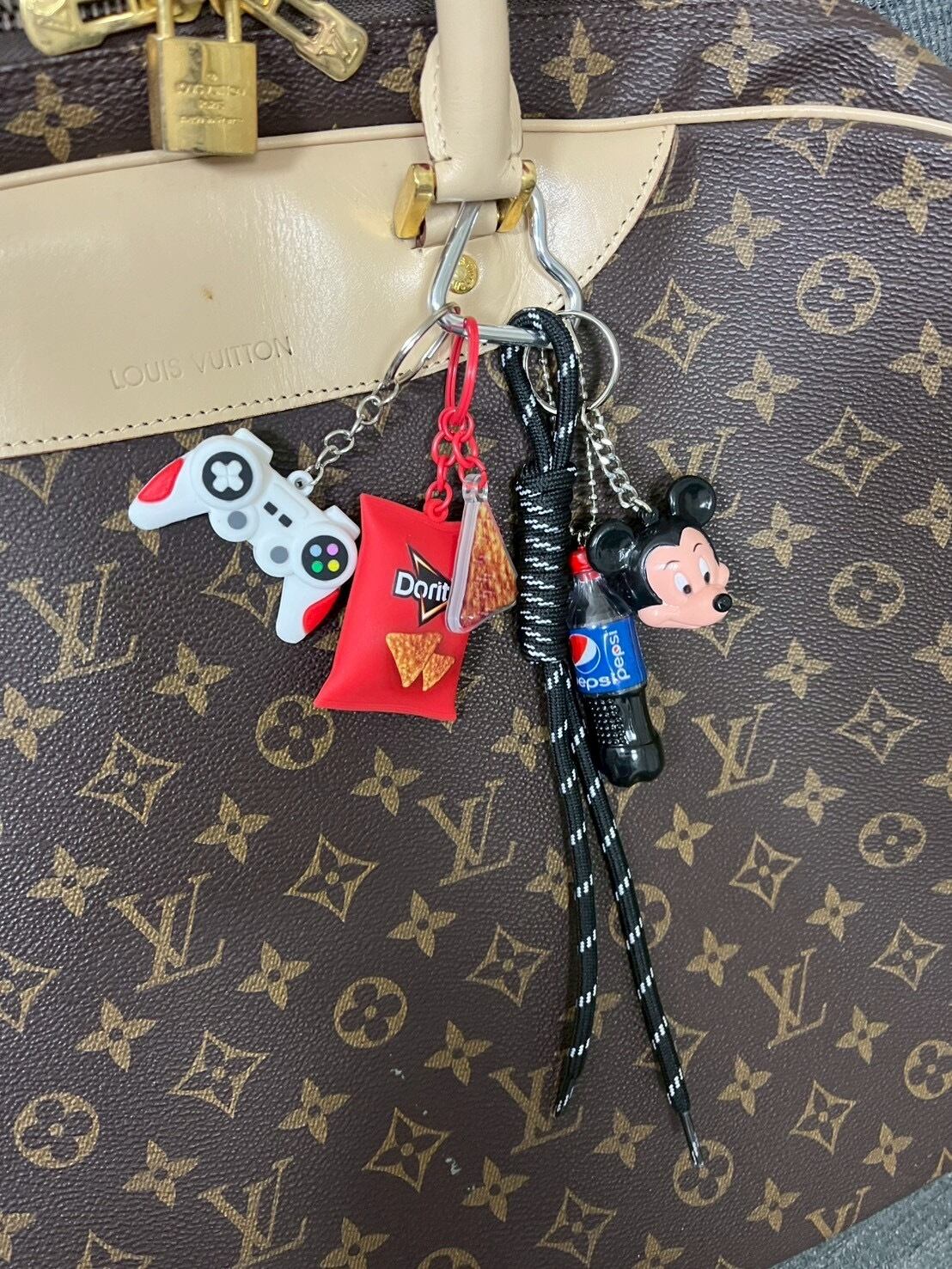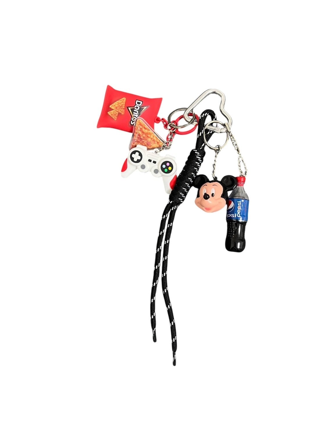 スナックやゲームコントローラー、ドリンクにミッキーを組み合わせたミックスキーチャーム。