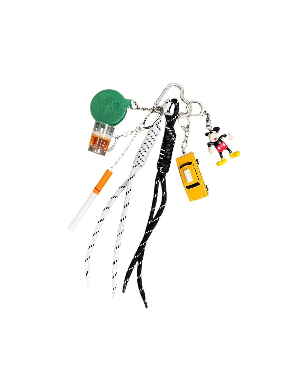 ドリンクやタバコ、イエローキャブ、手を広げて元気を届けてくれるミッキーを組み合わせたミックスキーチャーム。