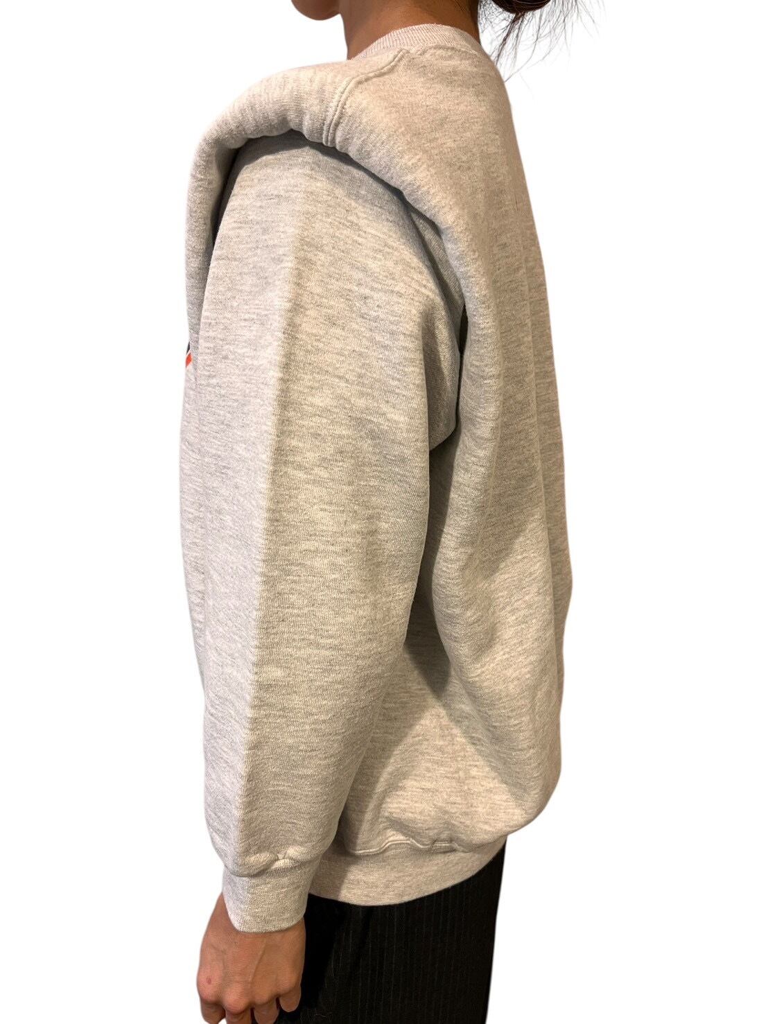 構築的なパワーショルダーが、ベーシックなカレッジスウェットに立体感とモードなニュアンスを加える一着。