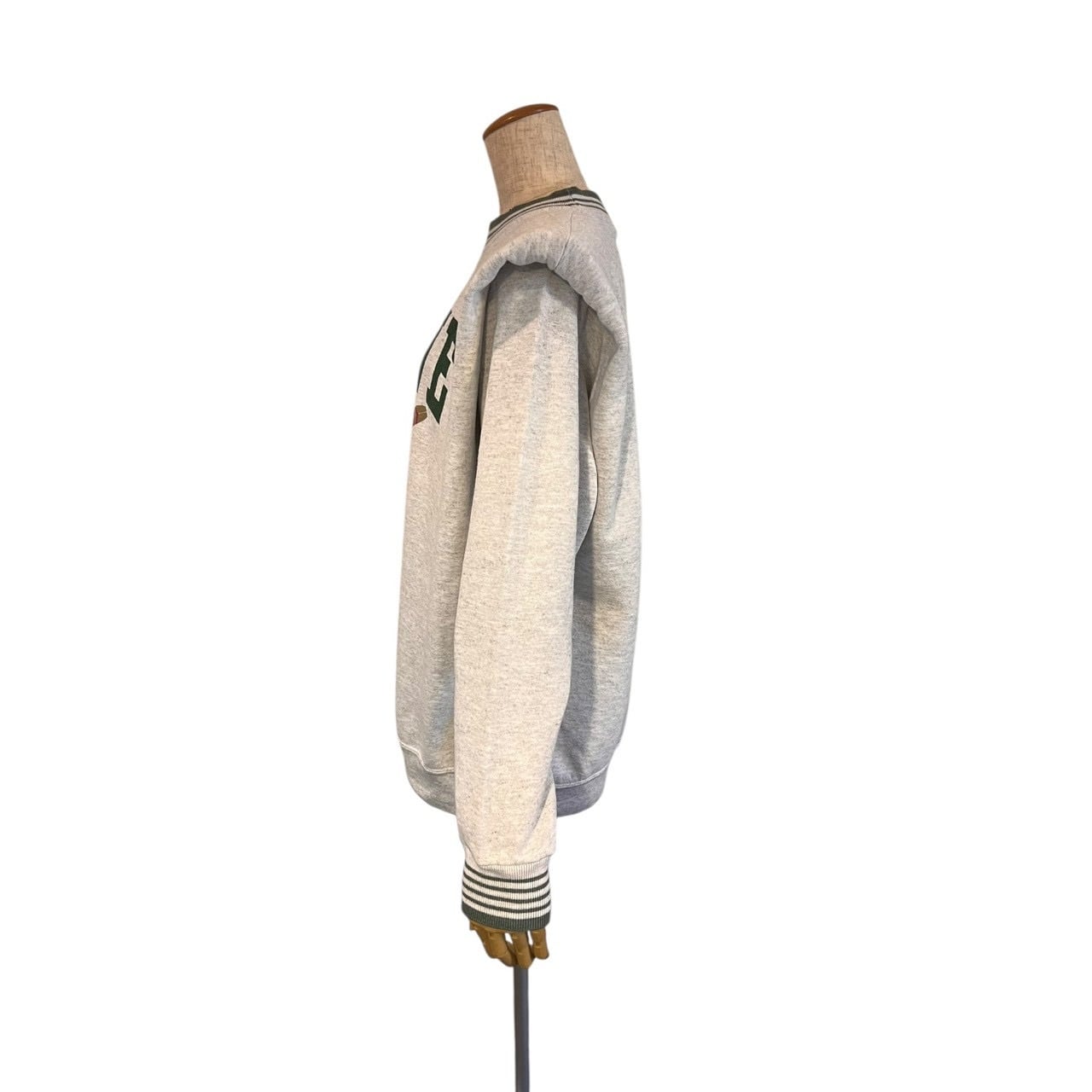構築的なショルダーラインが、クラシックなカレッジデザインに程よいモード感を加え、古着らしさと今っぽさを両立した仕上がり。