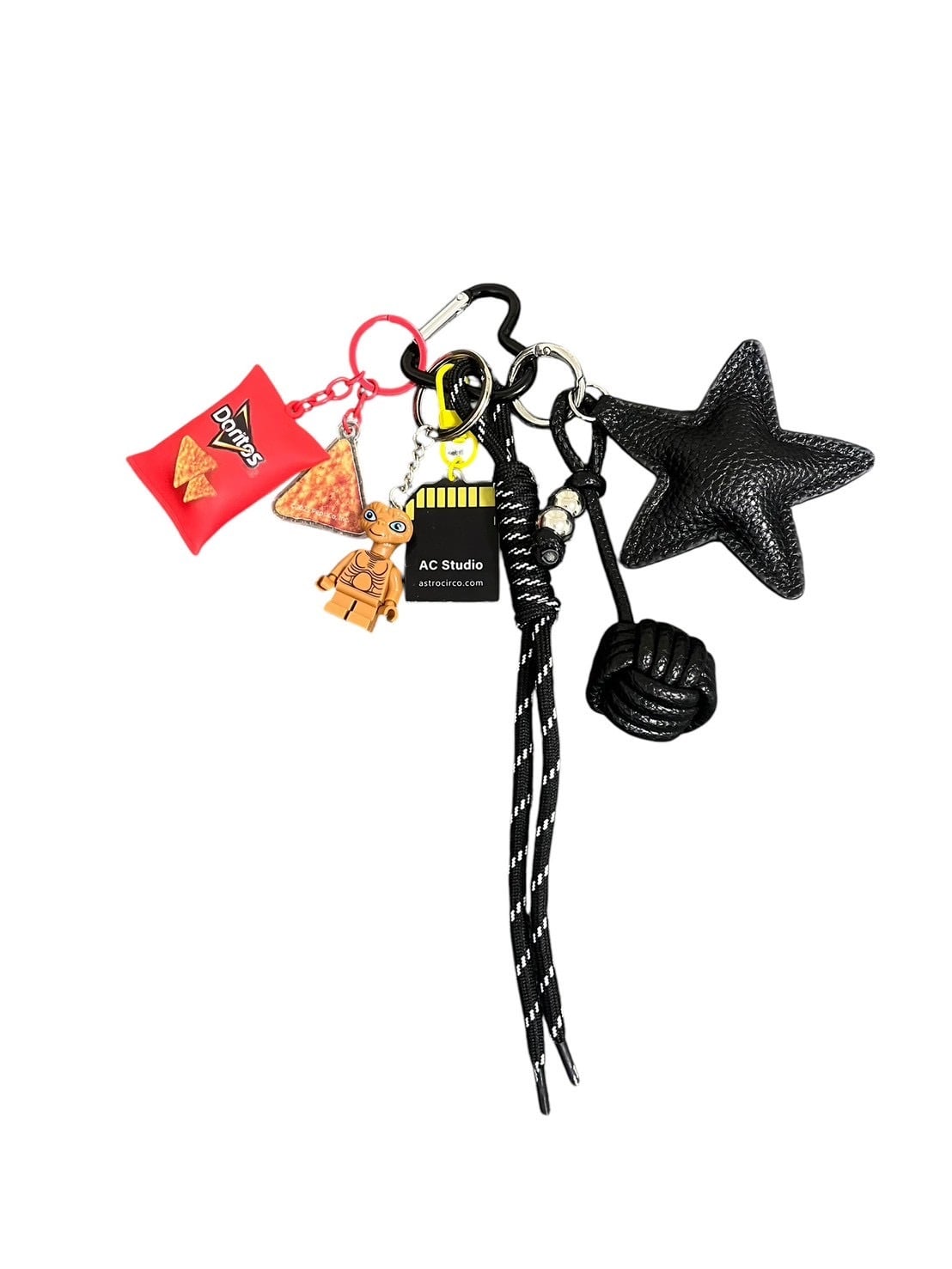 ロープやスナックモチーフ、80’s映画のキャラクターを組み合わせたミックスキーチャーム。