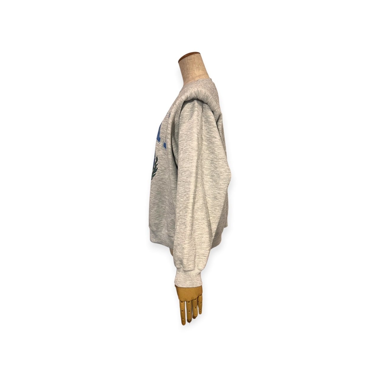グレーボディに「DRAKE」のカレッジロゴとブルドッグのグラフィックを配したスウェットを、構築的なパワーショルダー仕様に再構築。ヴィンテージらしいラフさと、シルエットの強さが同居する一枚です。