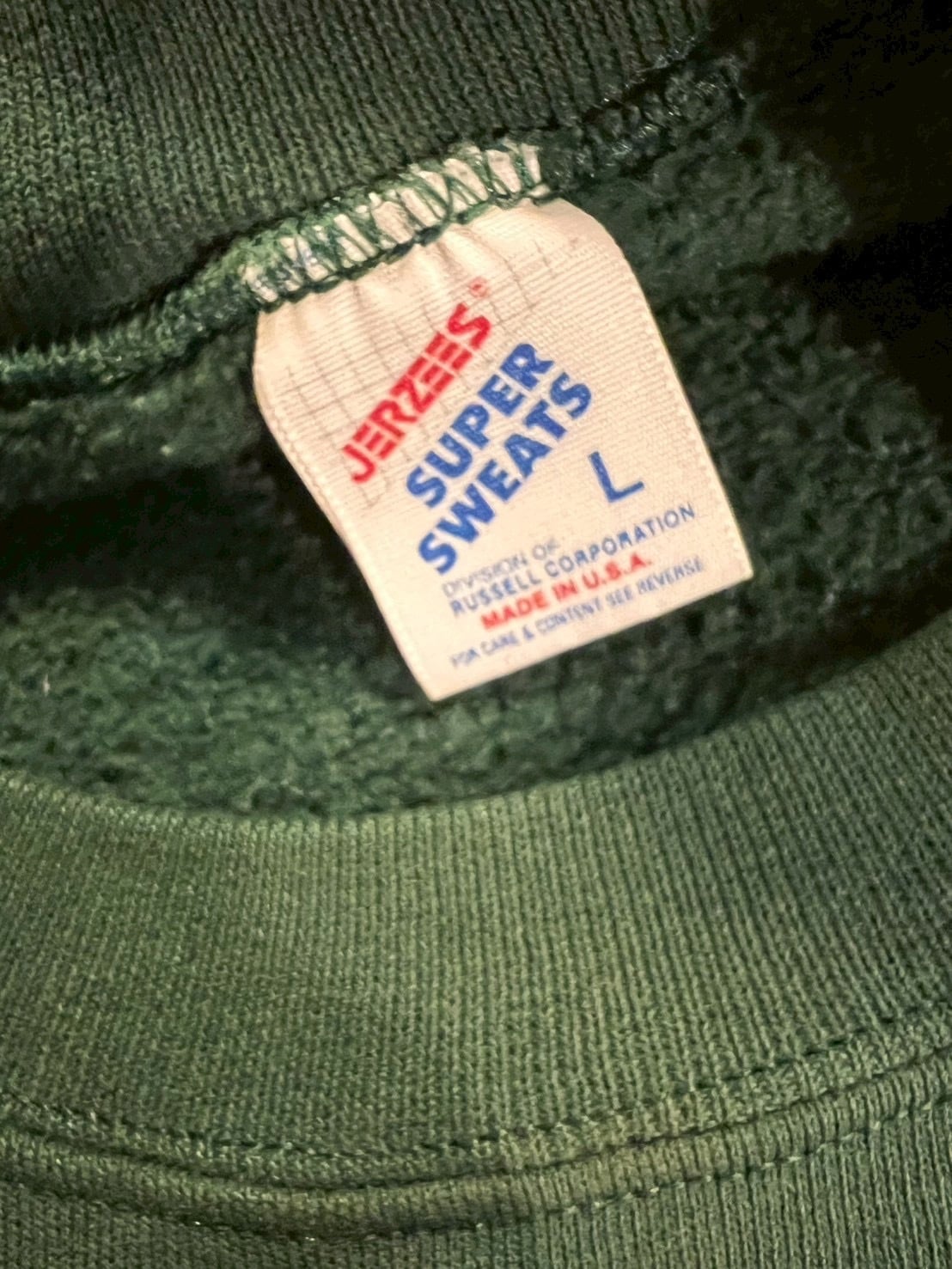 ボディはJERZEESのスウェットを使用。しっかりとした生地感とラフな風合いが、ヴィンテージらしい空気感を引き立てます。