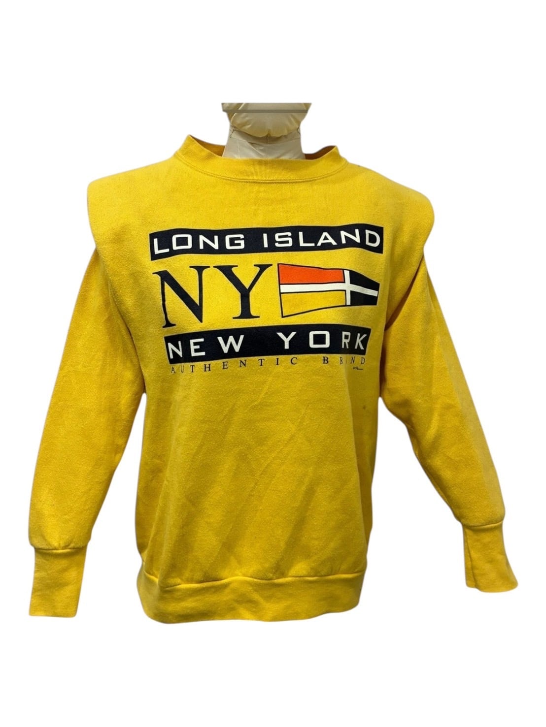 フロントには「LONG ISLAND NY NEW YORK」のレタリングとフラッグモチーフ。ブラックとのコントラストが効いた配色で、シンプルながら印象に残るデザインです。