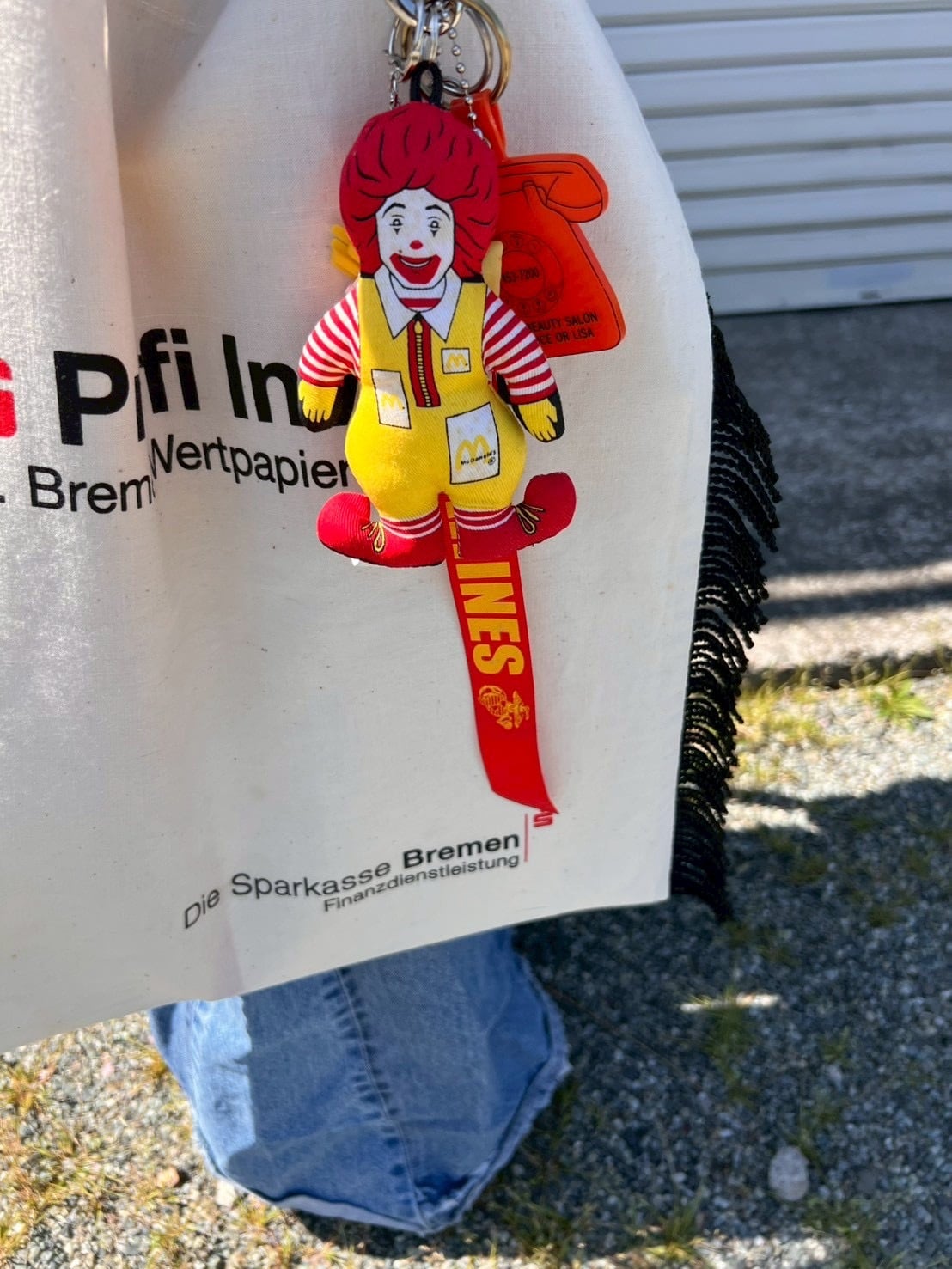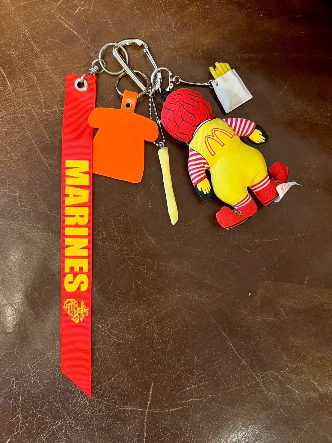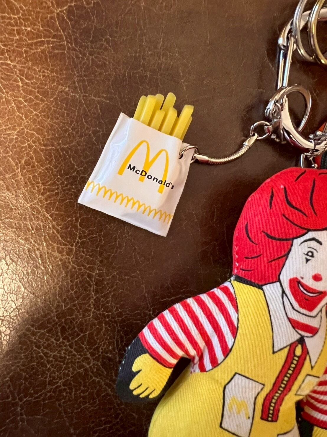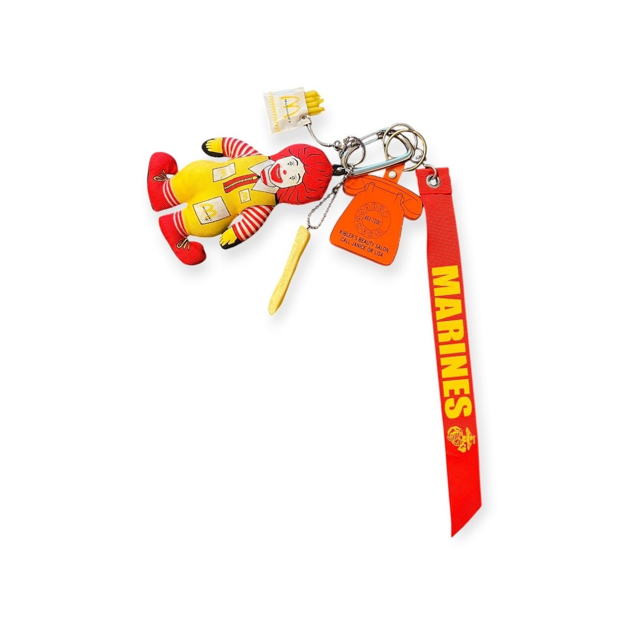 ロナルドを主役に、ポテトモチーフやヴィンテージの電話チャームを組み合わせたミックスチャーム。ポップでアイコニックなモチーフに、ラフな雑貨感を重ねたデザインです。