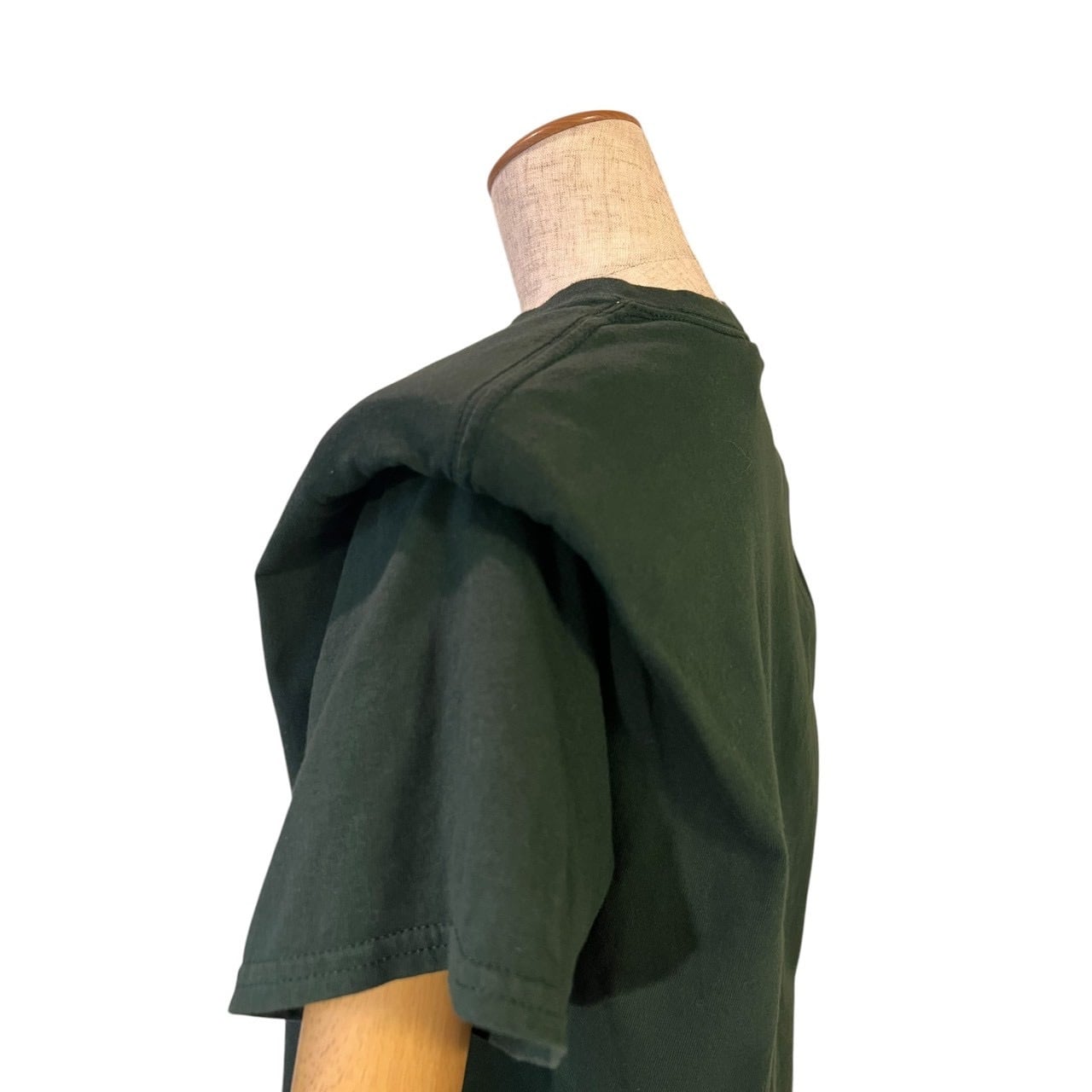 肩の構築的なシルエットがラフなプリントTに立体感を加え、デニムやスラックスと合わせて気軽に楽しめます。