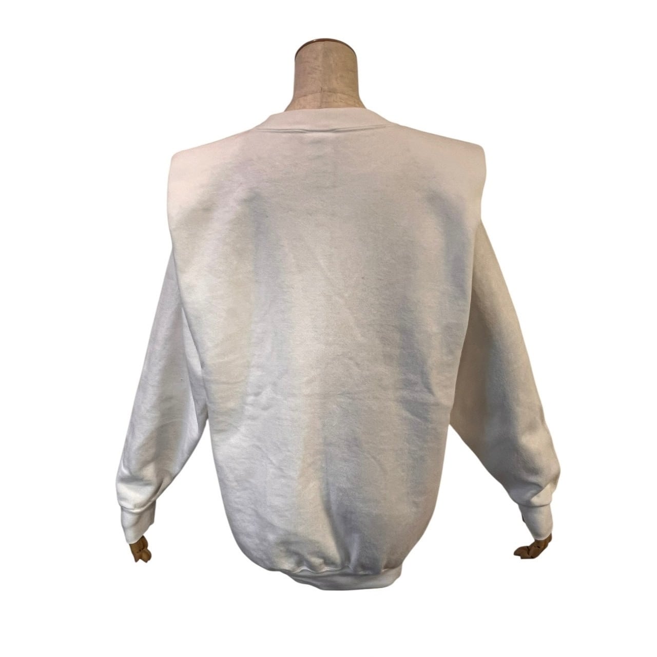 ホワイトボディをベースに、パワーショルダー仕様へ再構築したスウェット。