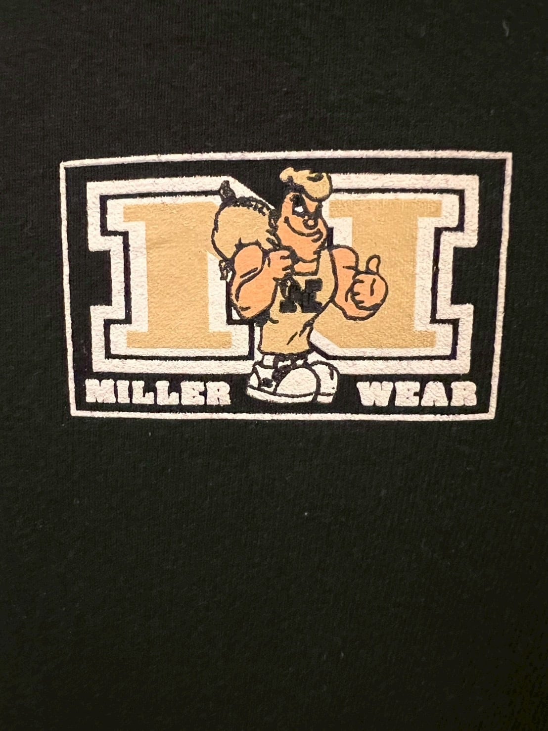 フロントには「NOBLESVILLE」のアーチロゴを大胆に配置。ベージュトーンのレタリングがブラックに映えつつ、派手すぎない落ち着いた配色でまとめられています。