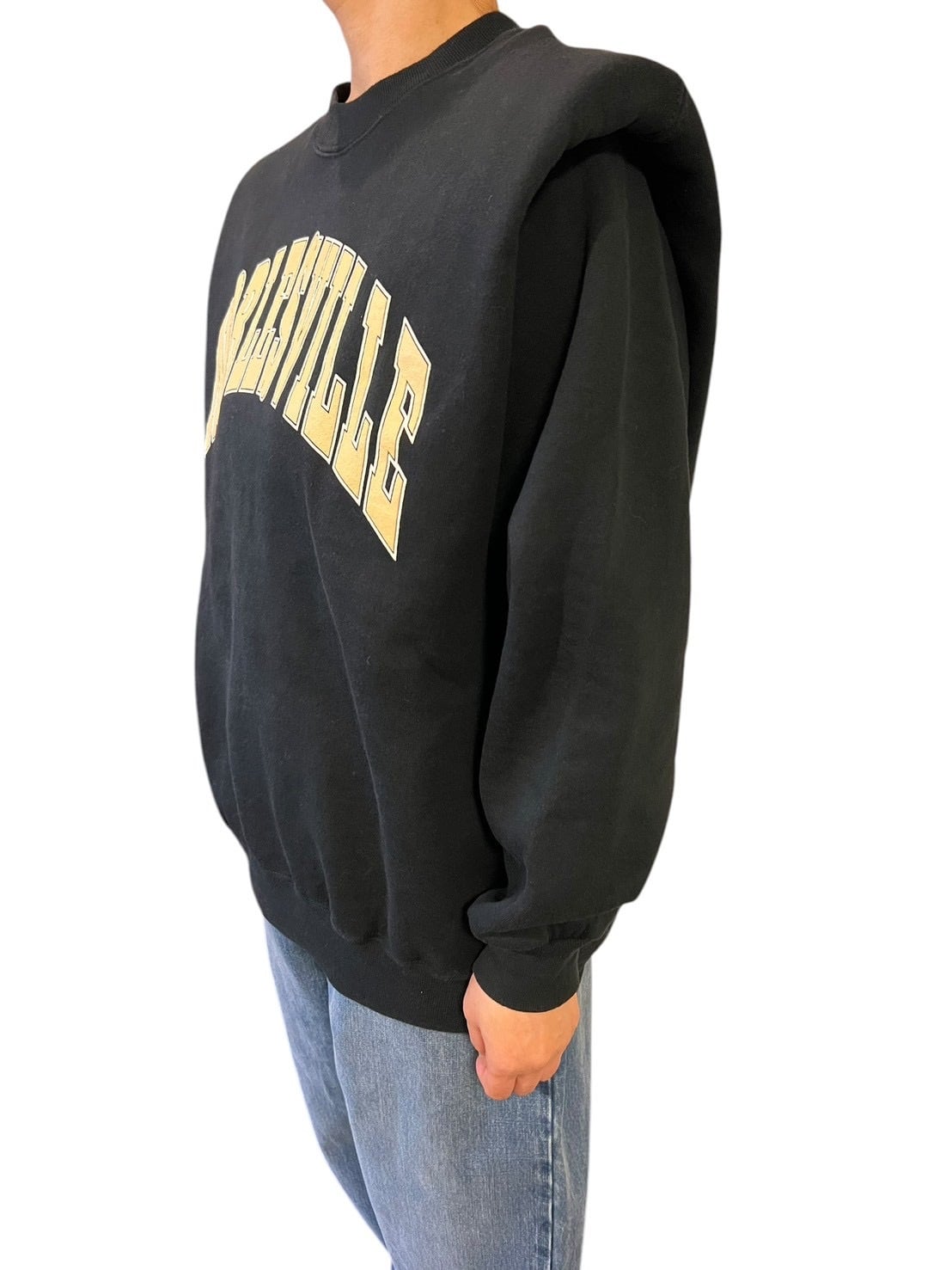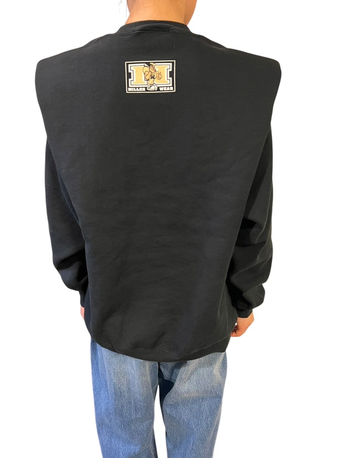 ブラックボディをベースに、パワーショルダー仕様へ再構築したスウェット。