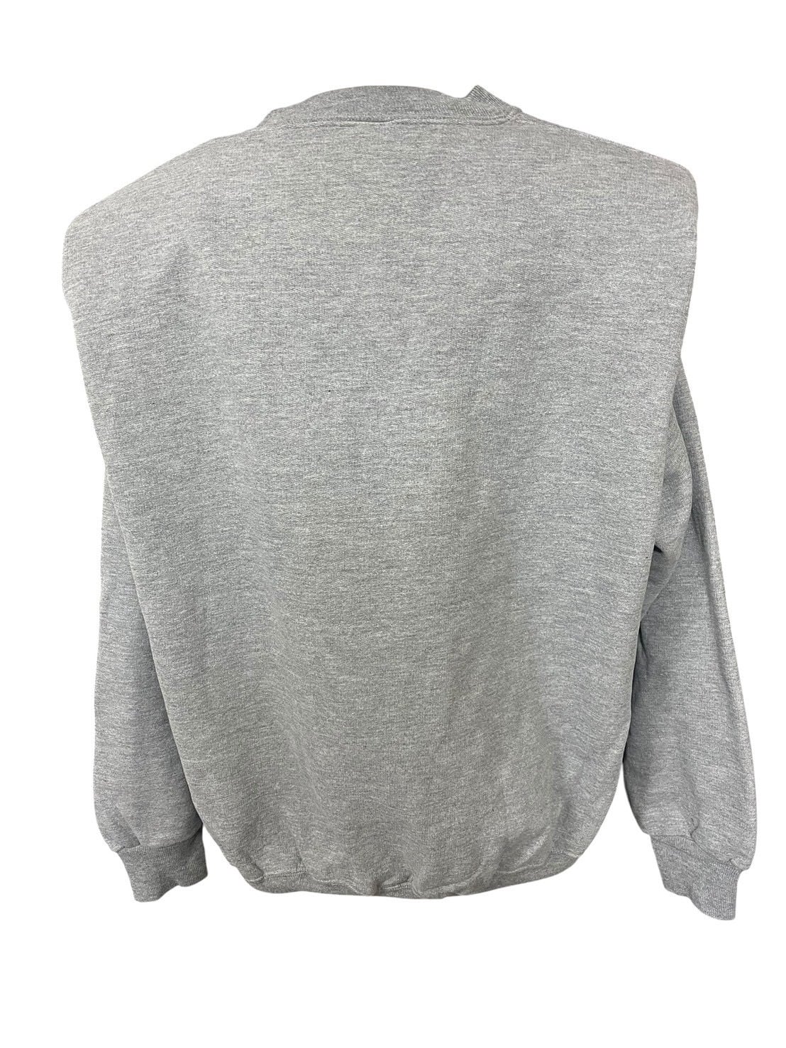 グレーボディをベースに、パワーショルダー仕様へ再構築したスウェット。