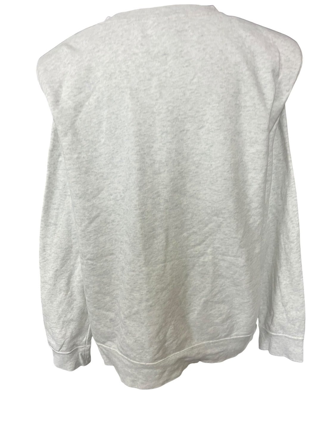 ライトグレーのボディをベースに、パワーショルダー仕様へ再構築したスウェット。