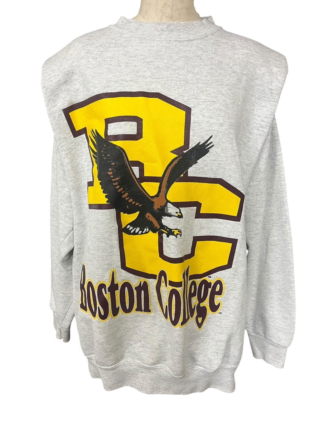 フロントには大きく配置された「BC」のレタリングに、翼を広げたイーグルのグラフィックを重ねたインパクトのあるデザイン。イエロー×バーガンディの配色が映え、カレッジらしい力強さと存在感を感じさせます。