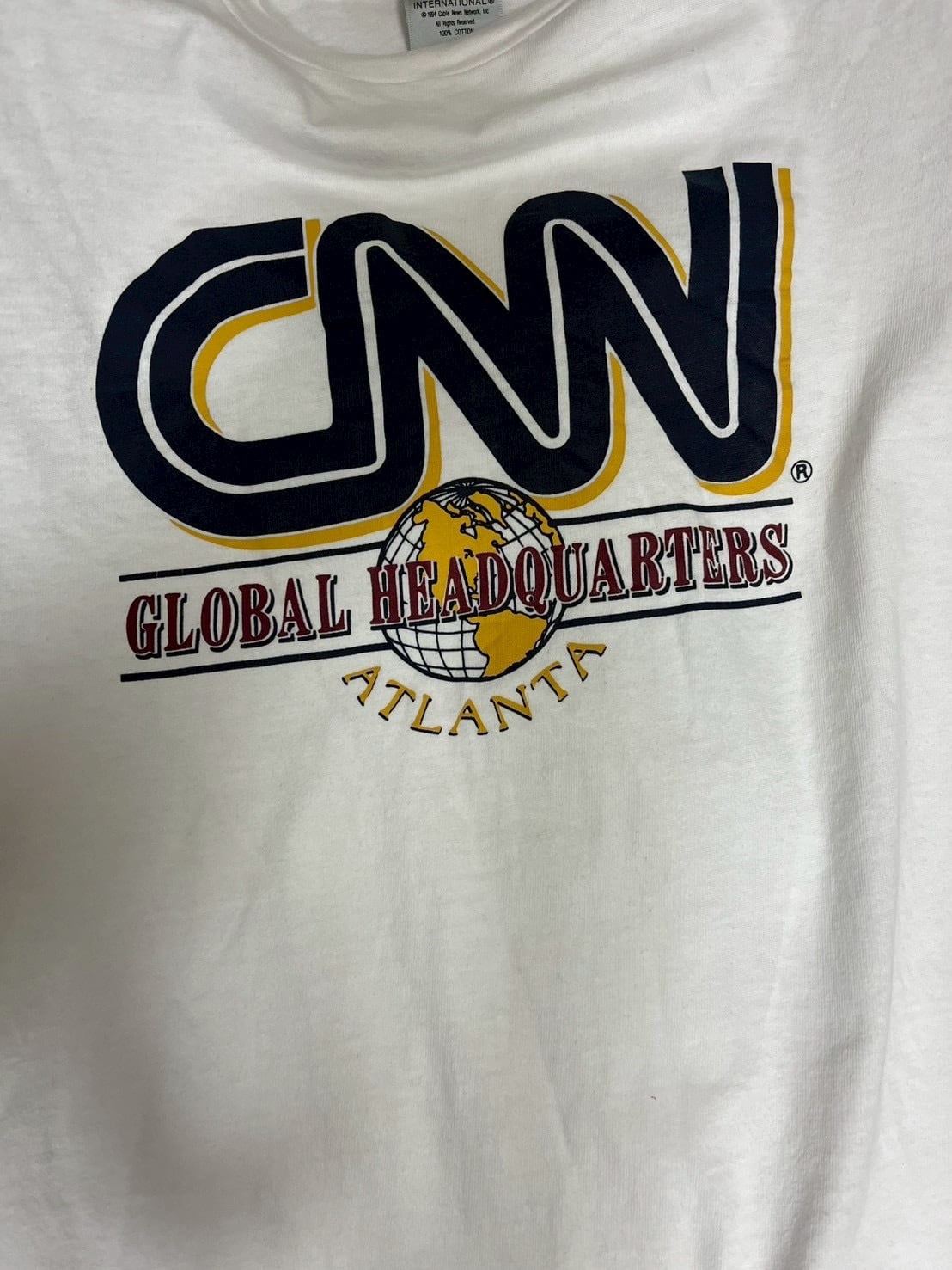 CNNのロゴを大胆に配した、グローバル企業らしいグラフィックデザイン。下部には「GLOBAL HEADQUARTERS ATLANTA」と地球モチーフが入り、ニュースメディアならではのスケール感を感じさせる一枚。