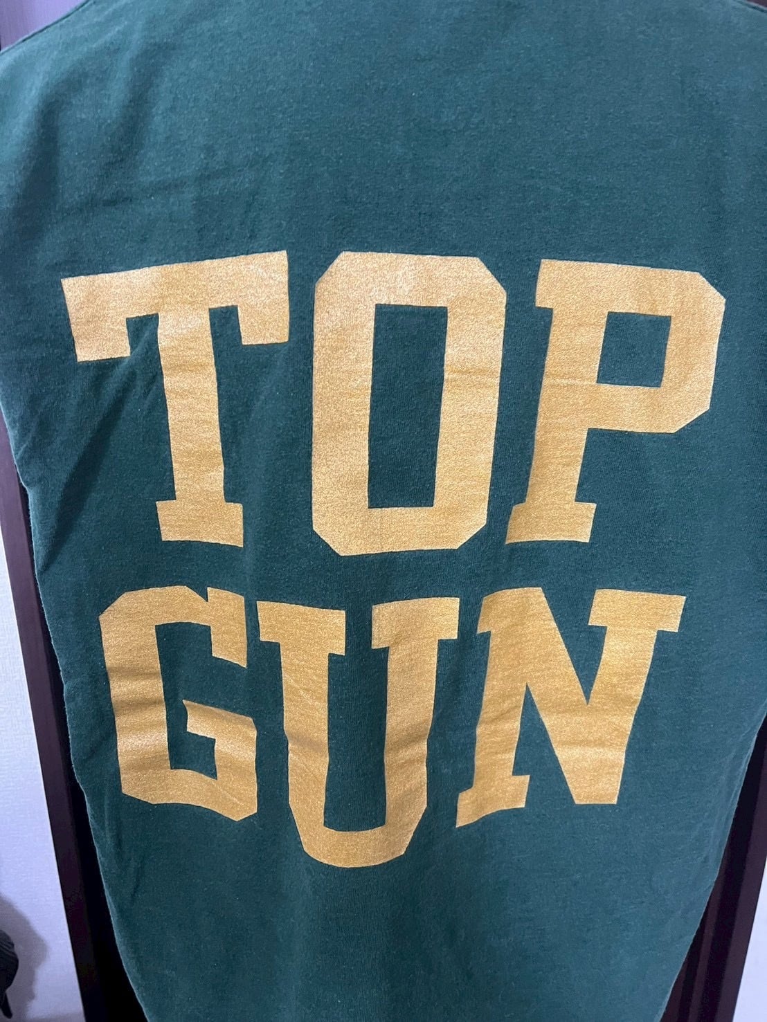 バックには大きく“TOP GUN”のタイポグラフィを配置し、フロントとのコントラストが効いた仕上がり。前後でしっかり主張のある、バランスの取れた一枚です。