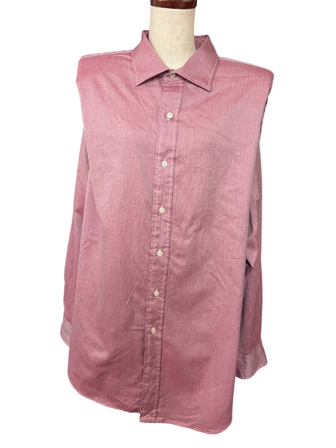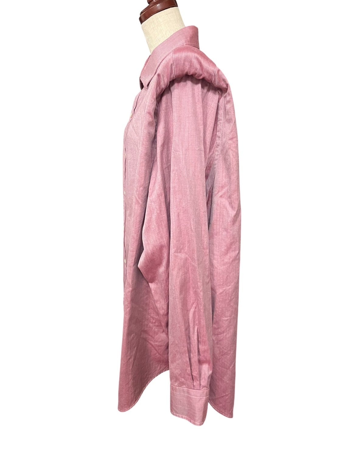 ヴィンテージラルフローレンのクラシックなシャツをベースに、パワーショルダーでモードに昇華。落ち着いたピンクのボディに、ややくすみのある色味が柔らかさと奥行きを感じさせます。